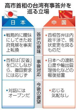 A 首相は昨年11月の衆院予算委員会で「中国が台湾を統一する手段として、武力行使を伴うものであれば、どう考えても存立危機事態になり得る」と話しました。「存立危機事態」は安全保障関連法の規定で、自衛隊による集団的自衛権の行使が可能となります。