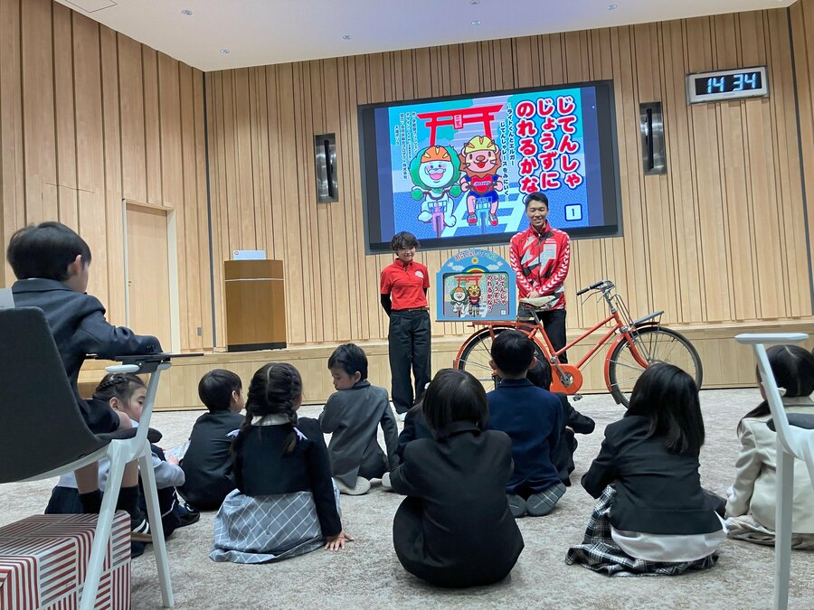 当社では2013年より、社員向け福利厚生の取り組みとして「ランドセル贈呈式」を実施しており、今年で11回目の開催となります。式典当日は例年と同様、子どもたちによる名刺交換体験や職場見学を行ったほか、栃木県宇都宮市を拠点とする自転車ロードレースのプロチーム「宇都宮ブリッツェン」を招き、交通安全教室や自転車体験プログラムも実施しました。