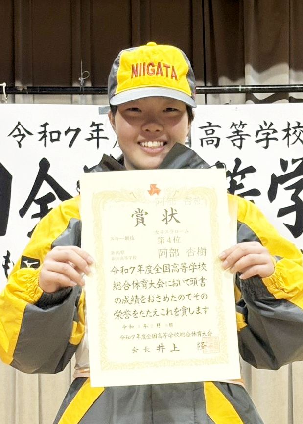 女子リレーは他に新井が6位、十日町総合が7位だった。アルペンの女子回転では、阿部杏樹(新井)が4位入賞した。