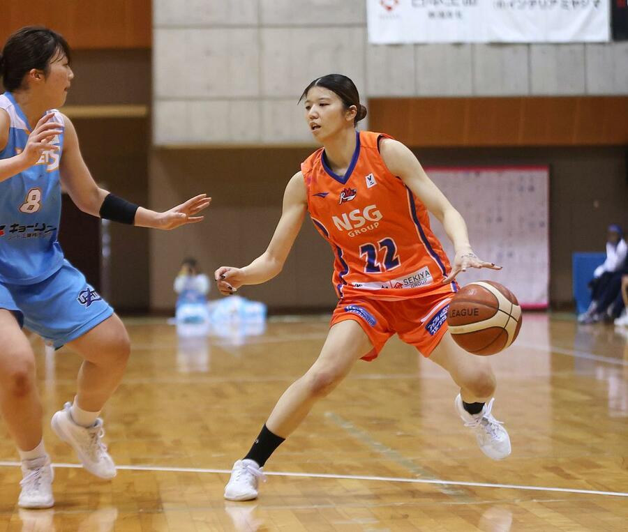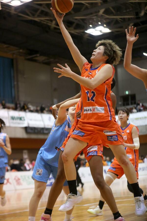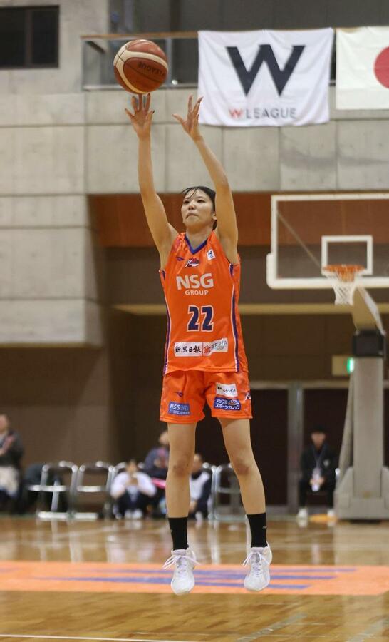 チーム最多の26得点を挙げた森田真衣=8日、白根カルチャーセンター