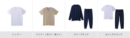 インナーウェア(男性用、女性用)、スリープウェア(男女兼用) 、カジュアルウェア(男女兼用)