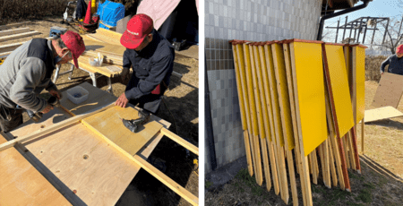 <セカオピ川柳を掲載している看板はしながわ花海道スタッフの手作りです>