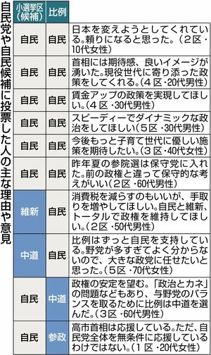 8日に投開票が行われた衆院選。高市早苗首相が日本維新の会との連立政権への「信任を問う」選挙と位置づけた超短期決戦は、自民党の歴史的な圧勝に終わり、県内でも全5小選挙区で自民の候補者が議席を得た。県民はどんな思いで選挙戦を見詰め、一票を投じたのか。新潟日報社が期日前と投開票日に県内投票所で行った出口アンケートを通じ、有権者の思いと選択の行方を探る。