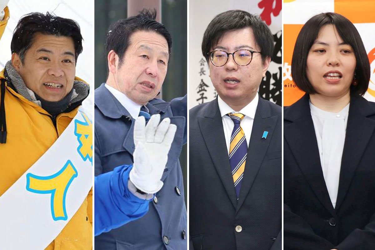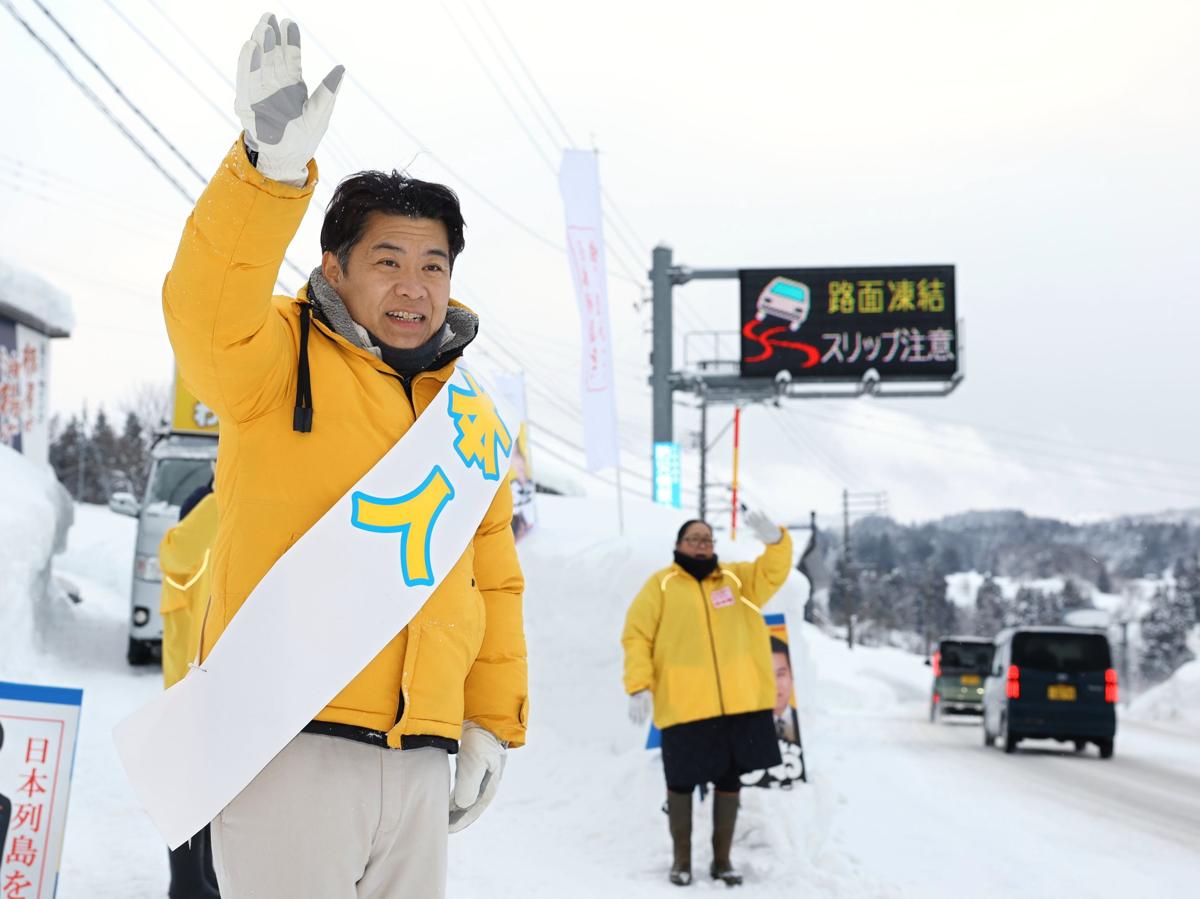 8日の衆院選で、長岡や柏崎など中越地域の4市2町村で構成する新潟4区は、自民党元職の鷲尾英一郎さん(49)が前回選の雪辱を果たした。中道改革連合前職の米山隆一さん(58)は大敗して議席を失った。国民民主党新人の野村泰暉さん(27)、参政党新人の大矢寿乃(ひさの)さん(46)は支持を広げられず落選。各陣営が悲喜こもごもに包まれる中、4人は支援への感謝を胸に、選挙戦を締めくくった。