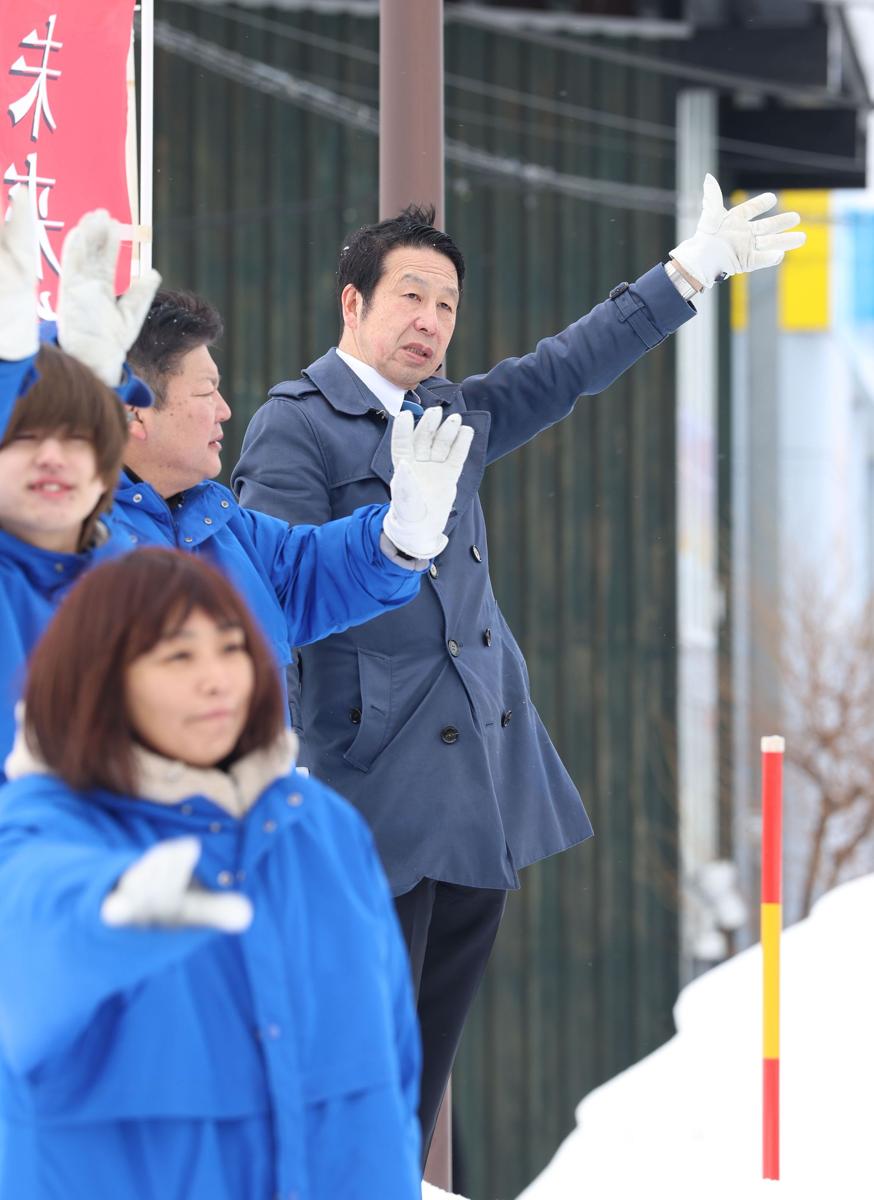 9日朝は、栃尾地域でつじ立ちをして手を振り、ガッツポーズも見せた。報道陣に自ら話しかけるなど、前夜の大勝の余韻をただよわせていた。