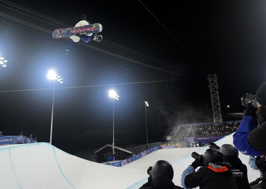 男子ハーフパイプ予選1回目を終えた平野歩夢=リビーニョ(共同)