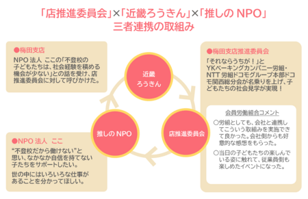 近畿労働金庫(理事長 宮﨑 正)では、会員労働組合(以下、会員)や生活協同組合等で構成される店推進委員会と当金庫の支店が、子ども・子育て支援に取組むNPO等の非営利団体を支援する「推しのNPOプロジェクト」を実施しています。