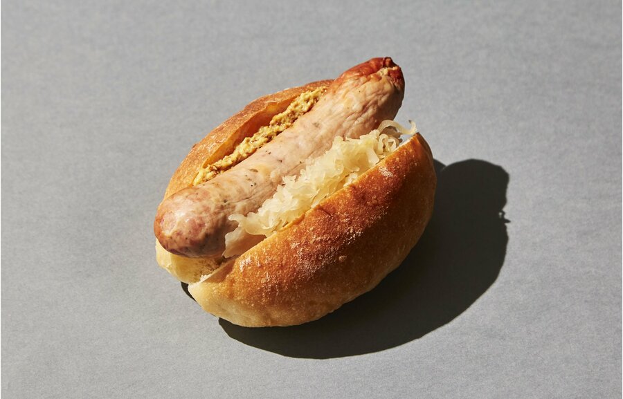 ジューシーなフランクソーセージに、爽やかなバジルの香りを効かせた一本。パリッとした食感と肉の旨み、ハーブの余韻が広がる大人向けのホットドッグ。軽食にも、ビールにも相性抜群。