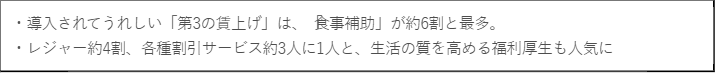 ◇継続的な賃上げが議論されている中、福利厚生を活用する「第3の賃上げ」を採用するという