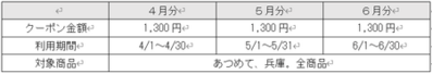 クーポンの内訳 :下表のとおり