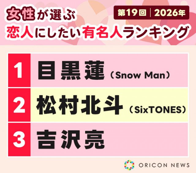 【ランキング表】目黒、松村、吉沢らがランクイン!2026年の総合TOP10