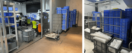 <立体自動倉庫導入前:点在する通い箱たち >