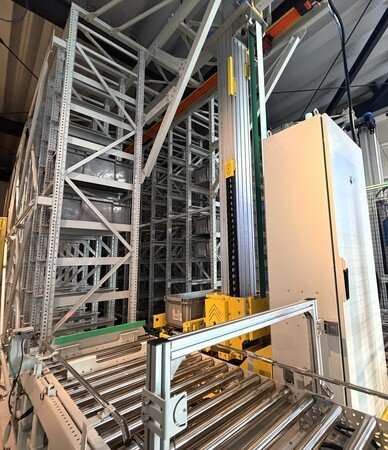 新しい立体自動倉庫は、現在稼働中の1号機と同サイズの高さ3.5メートル・全長10メートル(奥行き9メートル・レール8メートル)で、1号機横に設置されました。システム連携や稼働テストを3月中に終え、4月からの稼働が予定されています。