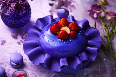 本企画のスイーツは、レッド・パープル・ピンク・ブルー・ホワイトの5つの色にそれぞれに異なる“ペルソナ”を設定し、その性格イメージをもとに見た目の印象だけでなく、味わいからも色ごとの個性や感情が伝わるよう考案しました。各色3種類(ホールケーキ1種+プティスイーツ2種)、計15種類のいちごスイーツでラインアップ。スイーツの名前にもこだわり、各ペルソナが放つ“決めセリフ”をイメージしたネーミングです。