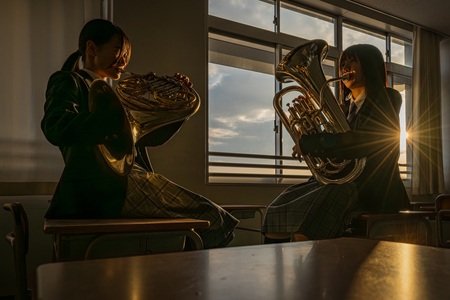 窓の青空、差し込む光、何より青春のキラキラ感!どれをとっても素晴らしい作品だと思います。学生さん達の楽器に対する想いと音が聴こえてきそうな胸キュン写真です。おめでとうございます!