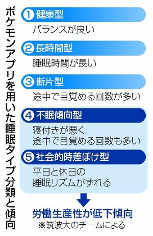睡眠研究の世界的権威として知られる柳沢正史・筑波大教授(神経科学)が、自ら監修に携わったスマホアプリ「ポケモンスリープ」で集まったデータを生かし、睡眠と仕事のパフォーマンスの関係に迫る研究成果をまとめた。これまで把握が難しかった眠りの質を客観的に記録した大量のデータと、人工知能(AI)も活用した解析により、注意が必要な睡眠タイプの存在や健康に働くためのヒントが見えてきたという。