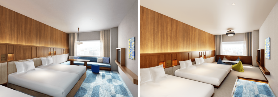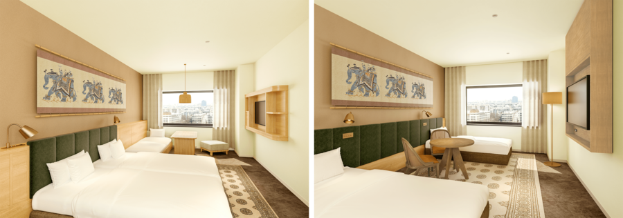 “TRAVELOGUE=異国の旅の記憶”のコンセプトを体現した空間と、快適な旅をサポートする機能を兼ね備え、旅のプロローグとエピローグを彩る滞在を提供。客室は、ご家族連れやグループでのご利用に合わせ、4名利用を中心に最大6名様までご宿泊いただける多様なタイプを揃えており、世界の4つの海をテーマにデザインしました。