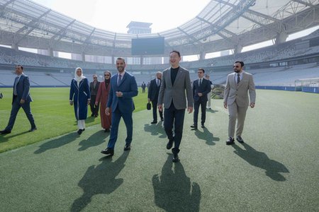 殿下は上海サッカークラブ博物館も訪問され、スタジアム運営センターの総経理である王氏による、クラブの歴史における功績と優勝回数に関するプレゼンテーションを聴講されました。また、イベント、試合、トーナメントを高度なデジタル技術を用いてアーカイブするシステムについての説明を受け、インタラクティブなタッチスクリーンもご覧になりました。