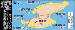コミバスの路線は、相川診療所の患者送迎バスに相乗りする七浦海岸線を合わせ、現在七つある=地図参照=。事前に登録した市民らが前日夕方までに電話予約する仕組みで、自宅前など車両が行ける場所まで送迎する。ただ、地域によって運行率(2024年度)が1〜94%と大きな差が生じており、認知度の低さが原因とみら...