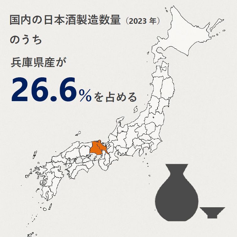 水・杜氏・良い米と、うまい日本酒を生み出す三条件が揃った兵庫県は、日本一の日本酒生産量を誇る「酒どころ」です。さまざまな味や飲み口の飲み比べを楽しめる酒蔵や、日本酒にまつわるスポットをご紹介します。