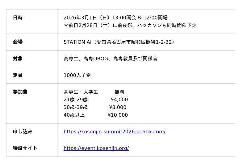 学生申し込みはこちら:https://withkosen.prossell.jp/25-26/nagoya