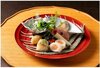 向附:トロの薄造り 昆布巻き 醤油あん 白身魚 白子ポン酢あん 浅葱
