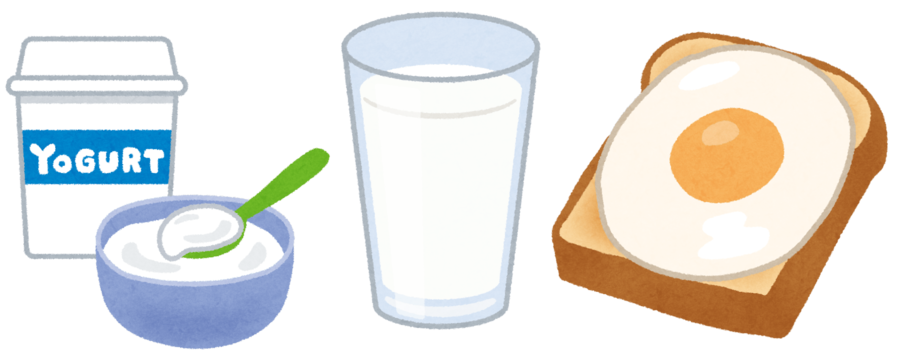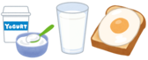 ①飲むヨーグルト50g ②牛乳50g ③目玉焼き(ホットプレートで約8分間蒸し焼きにしたもの1/2個)