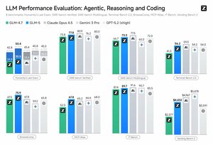 このモデルはキャパシティーと効率の向上を目指す新たなアーキテクチャーに基づいています。総パラメーター数は3,550億から7,440億に、アクティブパラメーター数は320億から400億に増加し、事前学習データは28.5兆トークンに拡大しました。さらに、学習方法も進化しています。Slimeと呼ばれるフレームワークにより、非同期の強化学習を大規模に展開できるようになり、モデルが長時間にわたるやり取りから継続的に学習し、学習後の効率を高めることが可能となります。また、DeepSeek Sparse Attentionを新たに導入し、長いコンテキストにおける性能を維持しつつ、展開コストを削減し、トークン効率を向上させます。