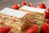 サクサクのパイと風味豊かないちごを重ねたチーズがアクセントのミルフィーユ。