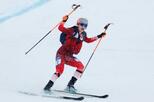 金メダル獲得から一夜明け、取材に応じるスノーボード女子スロープスタイルの深田茉莉=19日、リビーニョ(共同)