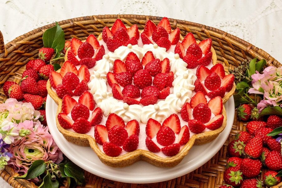 「輪花型 イチゴとリボンクリームのタルト」