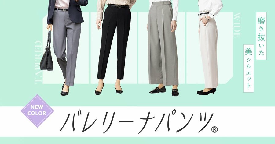 2023年9月に販売を開始した「バレリーナパンツ®」は、「バレリーナのようにまっすぐ伸びた美脚」というコンセプトのもと、快適なはき心地とスタイルアップも叶えるアイテムです。テーパード・ワイドの2タイプを展開しており、多くのお客様からご支持をいただいております。