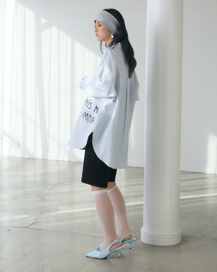 オーバーサイズに仕上げることで華奢見えが叶うBIGシャツ。