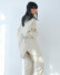 パンツは脚のラインを拾いすぎずきれい見えするコクーンシルエットでウエストタックと裾のダーツで立体感のあるデザインです。