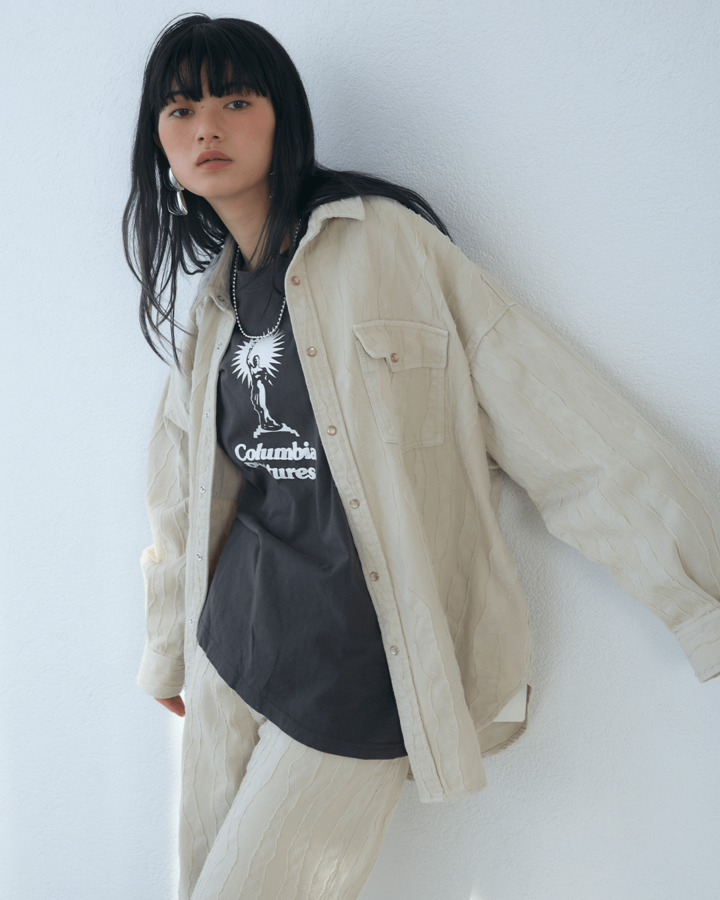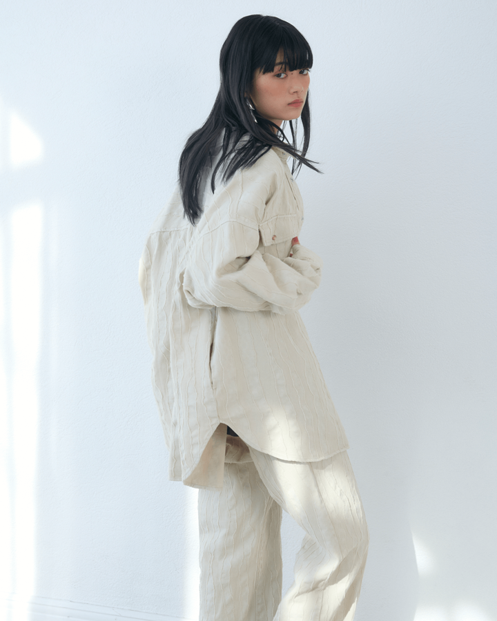 羽織るだけでこなれたムードに仕上がるジャケットはデニムシャツのような感覚で着用いただけます。