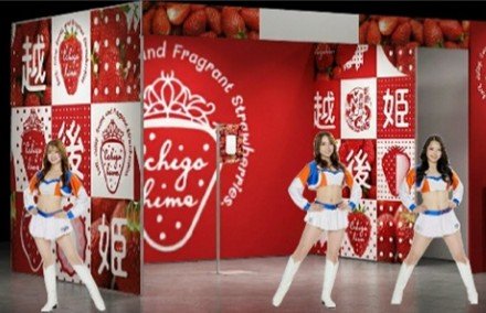 フォトジェニックなブース「ストロベリーラウンジ」を設け、アルビレックスチアリーダーズがお出迎え。撮影した写真をSNS で投稿いただいた方に、越後姫の試食やトートバッグをプレゼント。