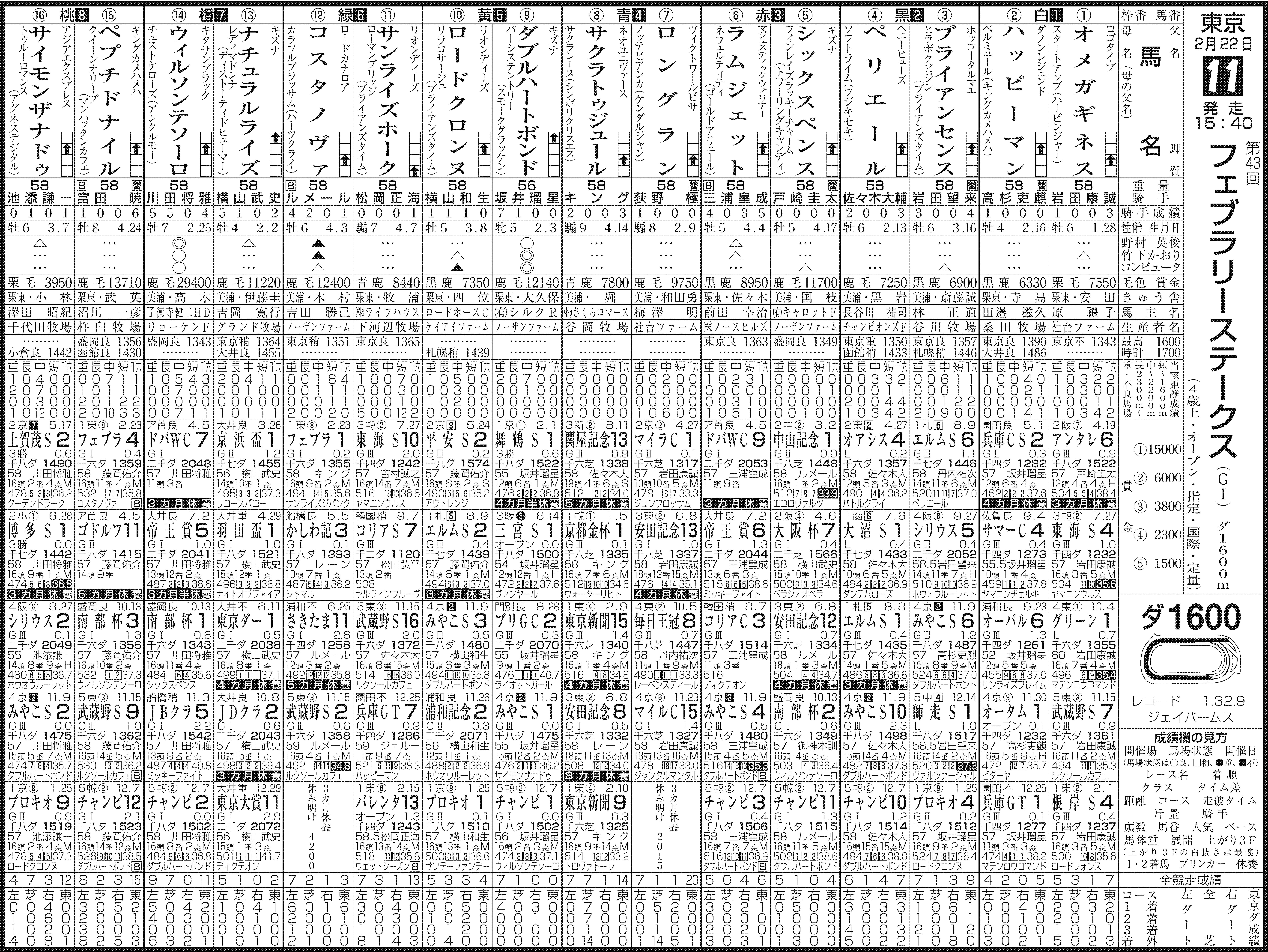 第43回フェブラリーステークス(22日・東京11R1600mダート16頭、GⅠ)