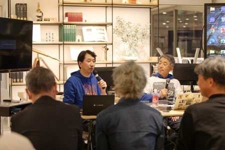 熱いトークが夜明けまで続く(左:けんごさん、スケザネさん、右:内田剛さん)