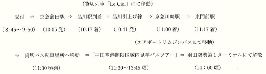※ダイヤ乱れ等により,時間や行程は一部変更になる場合がございます。
