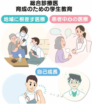 一つ目は「地域に根差す医療」です。さまざまな地域での病院実習では、学生が地域に根差す医療の実像を体感しています。訪問診療で高齢者の...