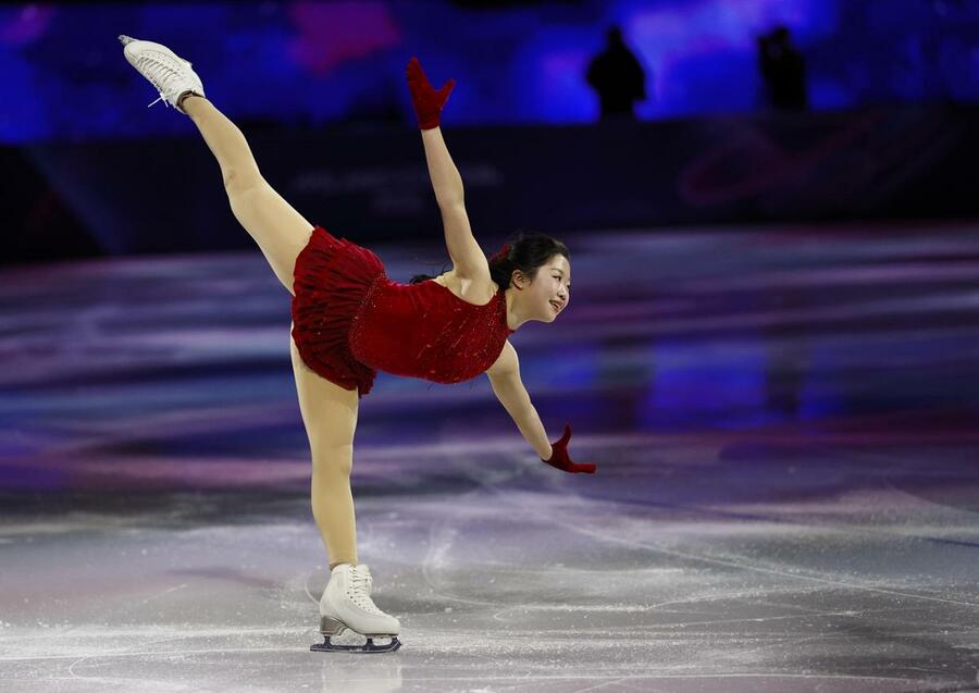 【ミラノ共同】フィギュアスケートの上位選手らによるエキシビションが21日、ミラノ・アイススケートアリーナで行われ、日本勢はペア「金」の三浦璃来、木原龍一組(木下グループ)や女子「銅」の中井亜美(新潟市出身、TOKIOインカラミ)、今季限りで引退する女子「銀」の坂本花織(シスメックス)ら個人種目のメダリストが出演して華麗な滑りで盛り上げた。