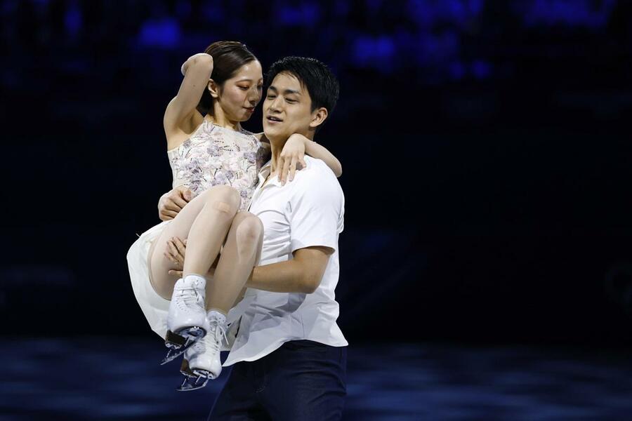 エキシビションで演技するペアの三浦璃来(左)、木原龍一組=ミラノ(共同)