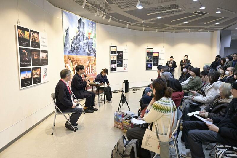 上映後に市民プラザ入口で行われるギャラリートーク。ゲストの話を間近に聞けて、観客同士の熱気も伝わる(21日、髙橋渉監督の回)