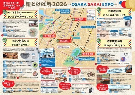 公益社団法人堺観光コンベンション協会では、堺の持つ魅力を体感していただける周遊型イベント「紐とけば堺2026」を開催します。今回は、「OSAKA SAKAI EXPO」をテーマに、堺市が大阪・関西万博に出展した内容を、もう一度味わうことができるコンテンツを提供します。体験コンテンツ、グルメ、スタンプラリー等を通してファミリー世代からシニア世代までの幅広い方々に、より深く堺の魅力を味わっていただけるイベントです。