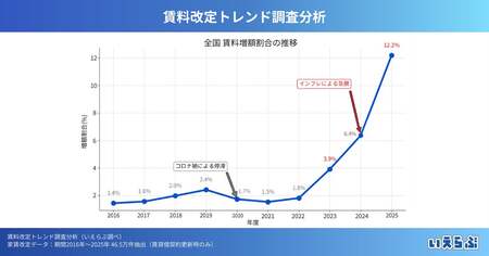 経済活動の再開と世界的なインフレ、管理コスト(人件費・資材費)の高騰を受け、オーナー側の賃上げ圧力が爆発。2025年度には12.2%(過去最高)に達しています。