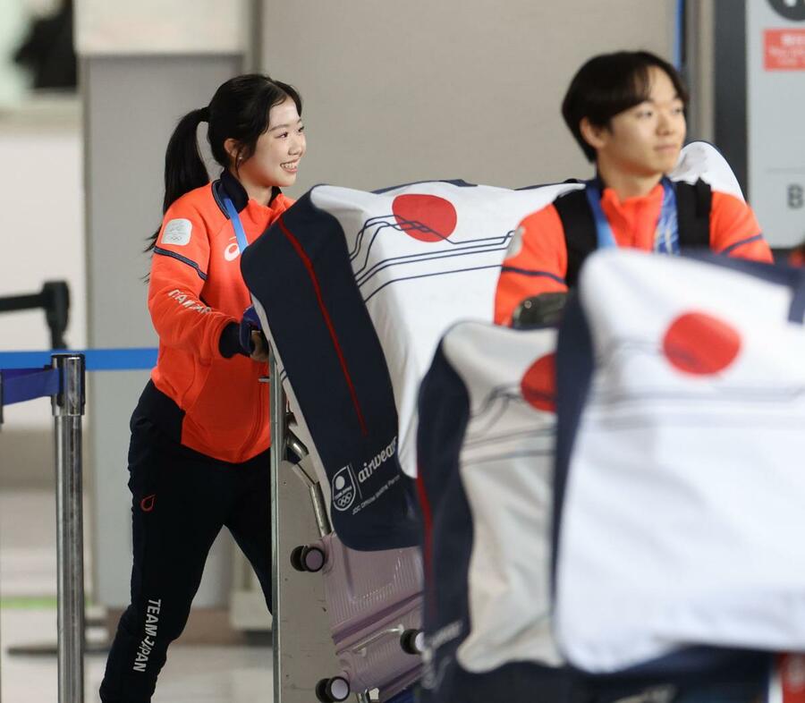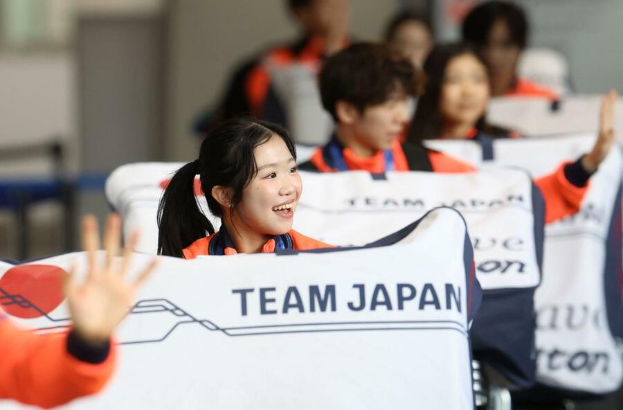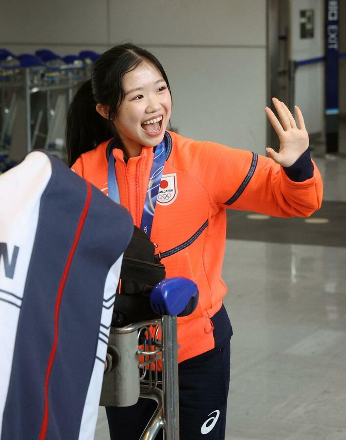 ミラノ・コルティナ冬季五輪の日本選手団が24日正午ごろ、成田空港着の航空機で帰国した。フィギュアスケート女子で銅メダルに輝いた中井亜美(17)=TOKIOインカラミ・新潟市出身=は、長時間のフライト後でも元気な様子を見せ、ファンの声援に応えた。