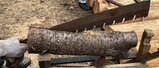 ②丸太を輪切りにする「丸太切り体験」では、丸太から「板」を切り出す「木挽き」も体験し丸太から板に加工する過程を学ぶ。