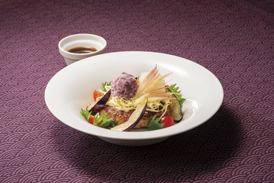 みょうがや大葉の爽やかな風味に、しそおろしの上品な香りを重ねた、春の彩りを感じる和風なハンバーグです。