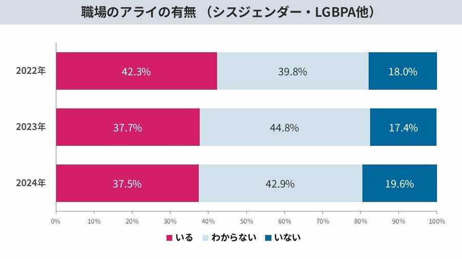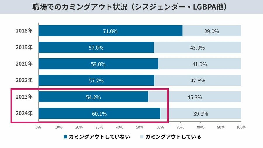 カミングアウトする人は“増えていない“ 一部では減少。職場のアライ(支援者)も増加せず。