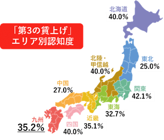 賃上げだけでは対応が難しい局面を迎える2026年は、給与改定と「第3の賃上げ」を組み合わせた“ハイブリッドな賃上げ策”の重要性が一層高まると考えられます。しかし、大都市圏を除く地域では、「第3の賃上げ」の認知はまだ十分とは言えません。「第3の賃上げ」認知率は、37.4%まで高まっていますが、九州エリアについては、35.2%と平均よりもやや下回っている状況です(※3)。